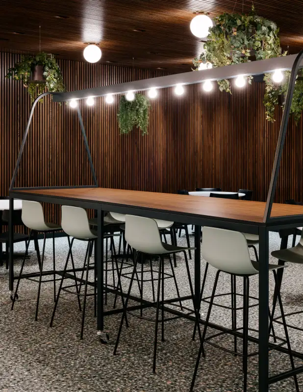Collaboration et inventivité ont permis de développer rapidement des solutions efficaces faces aux multiples changements en cours de projet – contexte locatif oblige. Le design mise sur la création de multiples zones aux ambiances uniques, le tout dans un ensemble cohérent conçu pour durer.