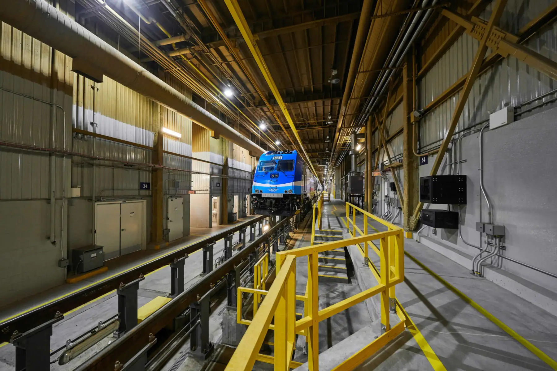 Le projet du nouveau centre d’entretien, réalisé en mode conception-construction et financement, porte sur un ensemble de bâtiments d’une superficie d’environ 9 135 m² et d’une cour ferroviaire, aménagés sur un terrain d’environ 132 000 m². Les installations comprennent un garage de jour, un atelier d’entretien lourd pour le matériel roulant de l’AMT, un bâtiment d’inspection et de service, un lave-train automatique et des espaces administratifs.